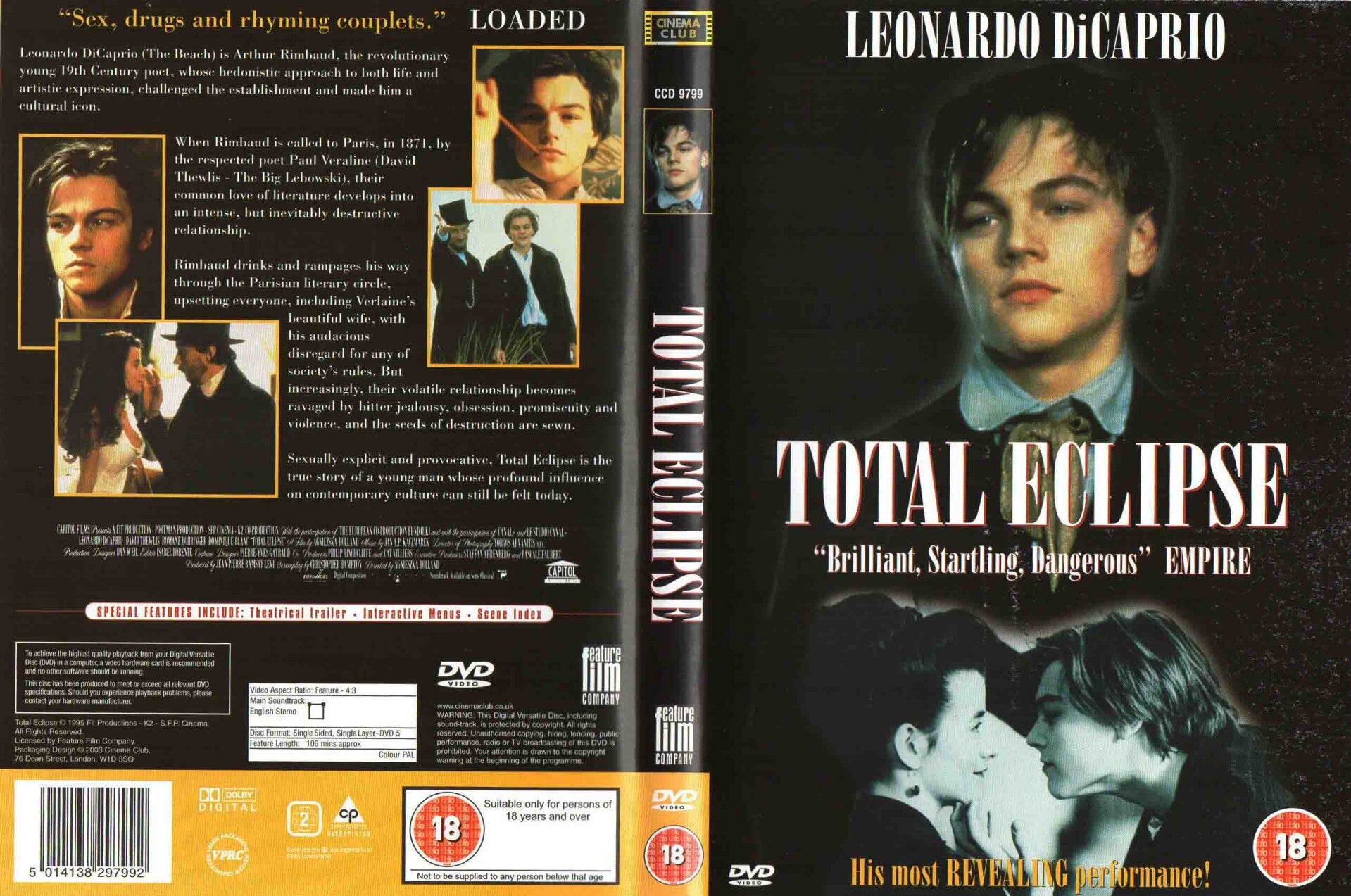 Artikel:Total Eclipse DVDMaatschappij:Cinema ClubJaar:1995EAN:5014138297992Info:UK import Regio 2 Geen ondertiteling 106 minutenStaat:***1/2 lichte krasjes