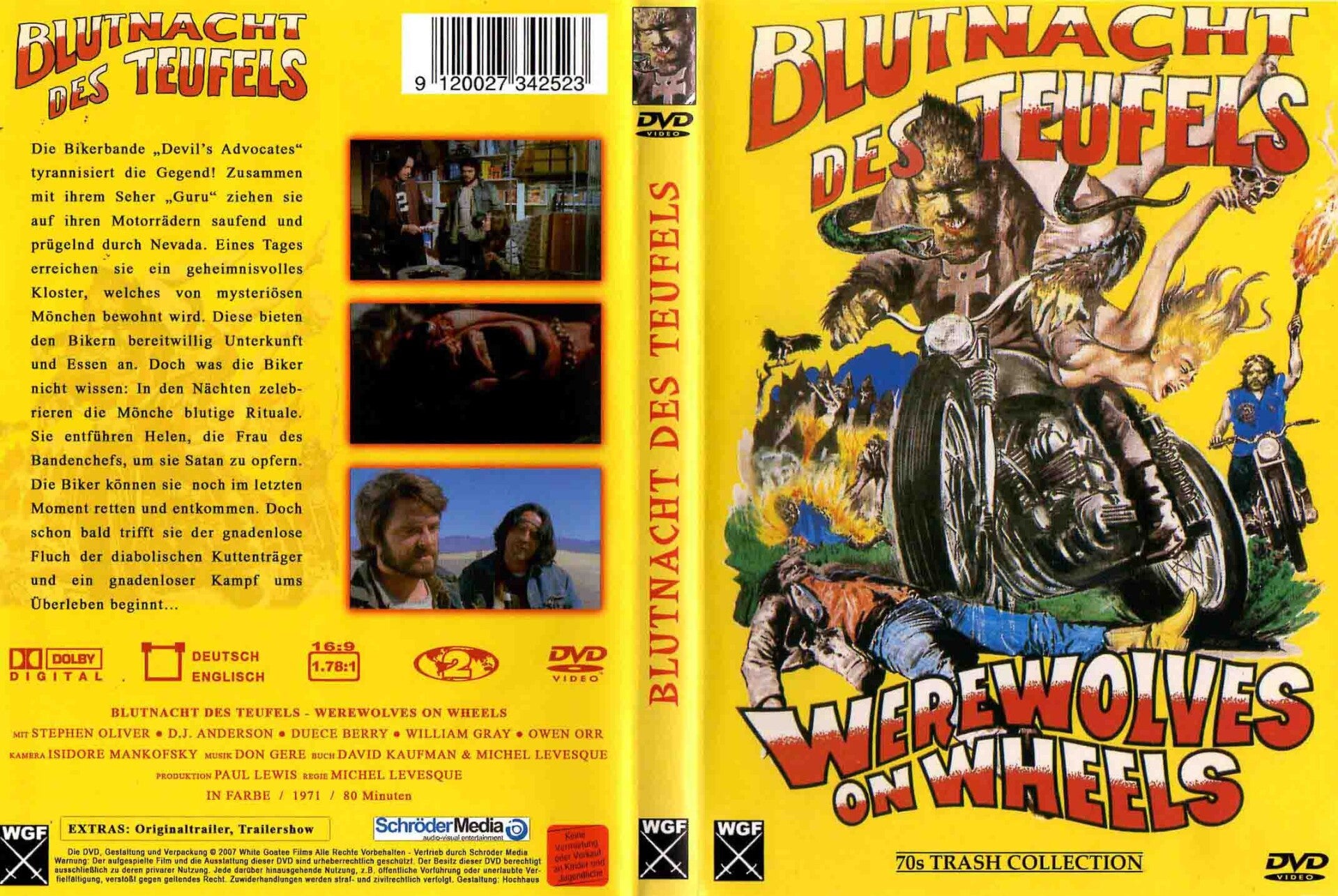 Artikel:Werewolves on wheels DVDMaatschappij:WGFJaar:1971Land: DuitslandEAN:9120027342523Info:Duitse uitgave Engelse taal 80 minutenStaat:****