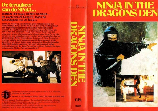 Artikel:Ninja in the dragons den VHSMaatschappij:NV Video StarJaar:1982Info:rental big boxNL ondertiteldStaat:***