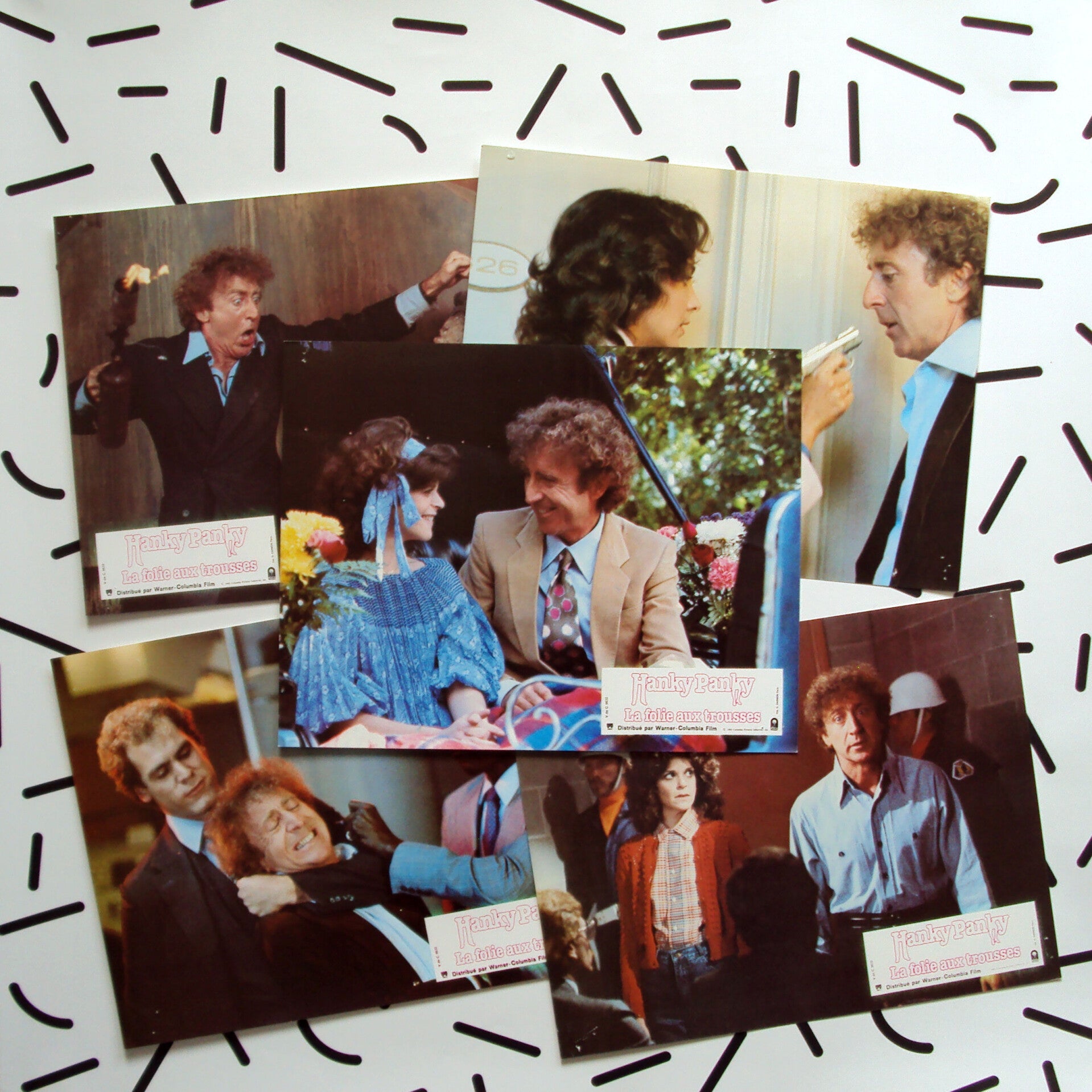 Artikel:Hanky Panky lobbycardsJaar:1982Info:set van 10 Franse lobbycards21x27cmStaat:***1/2 gaatjes in de hoeken