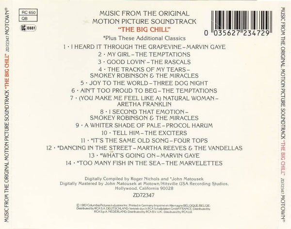 Artikel: Big Chill soundtrack CDMaatschappij:MotownJaar:1984EAN:0035627234729Info:zie scan voor tracklistVarious artistsStaat:****booklet heeft lichte 'case dent'