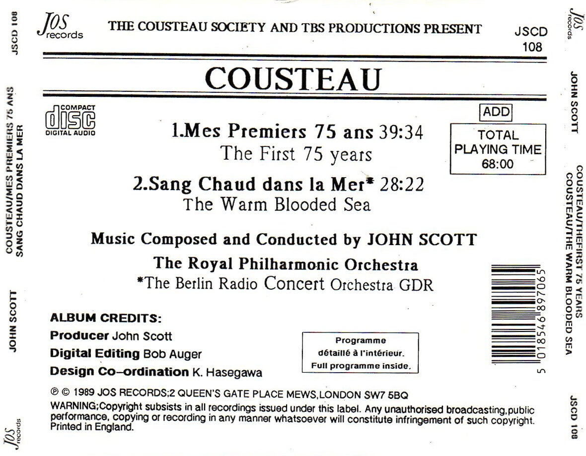 Artikel:Cousteau: First 75 years TV soundtrack CDMaatschappij:JOS RecordsJaar:1989EAN:5018546897065Info:zie scan voor tracklistJohn ScottStaat:****