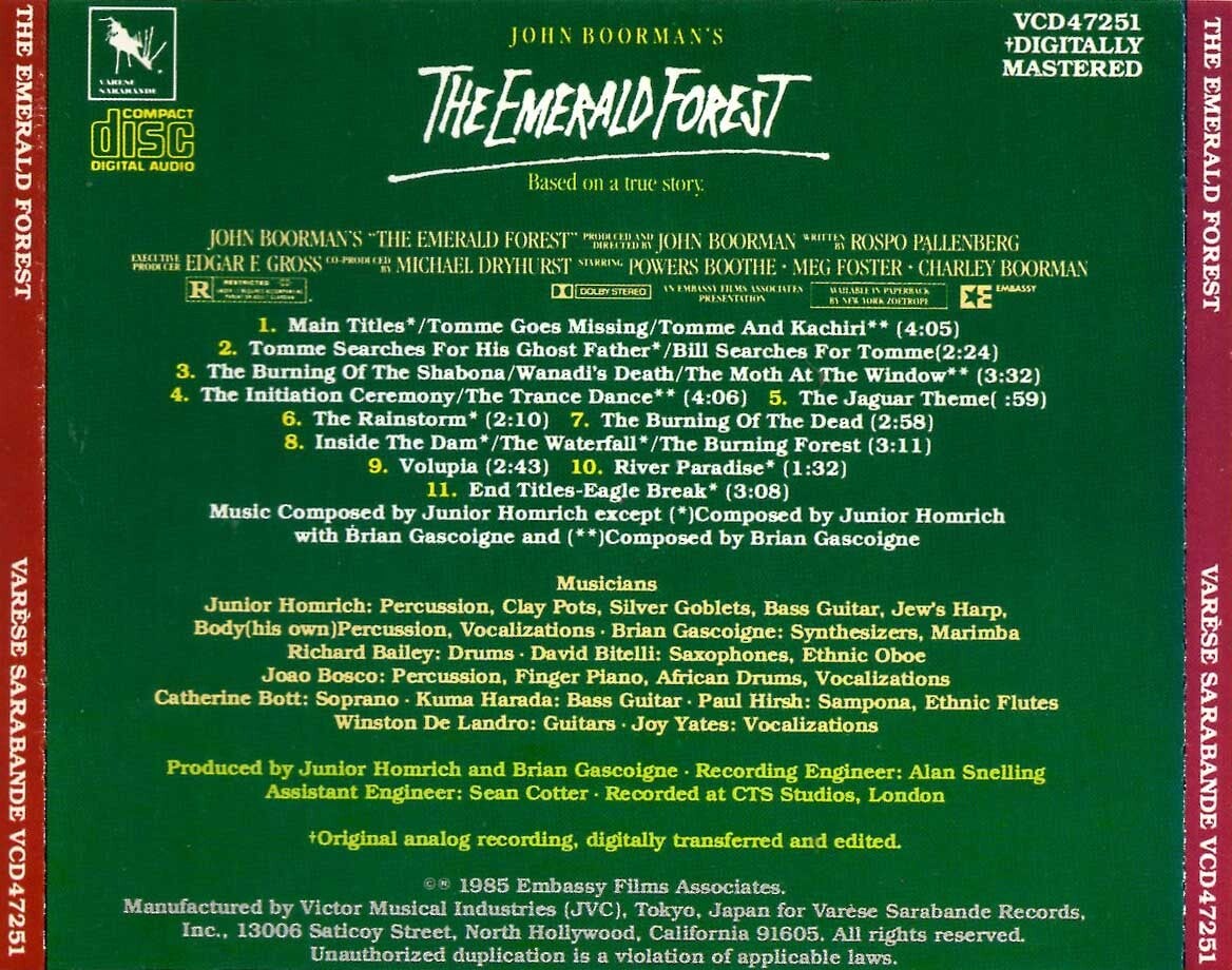 Artikel:Emerald Forest soundtrack CDMaatschappij:Varese SarabandeJaar:1985EAN:/Info:zie scan voor tracklistJunior Homrich/Brian GascoigneStaat:****