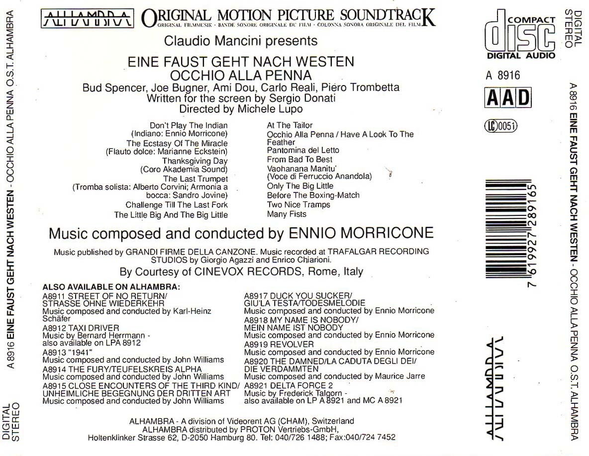 Artikel:Faust Geht Nach Westen, eine soundtrack CDMaatschappij:AlhambraJaar:1990EAN:7619927289165Info:aka Occhio alla penna/Buddy Goes WestEnnio MorriconeStaat:**** 'case dent'