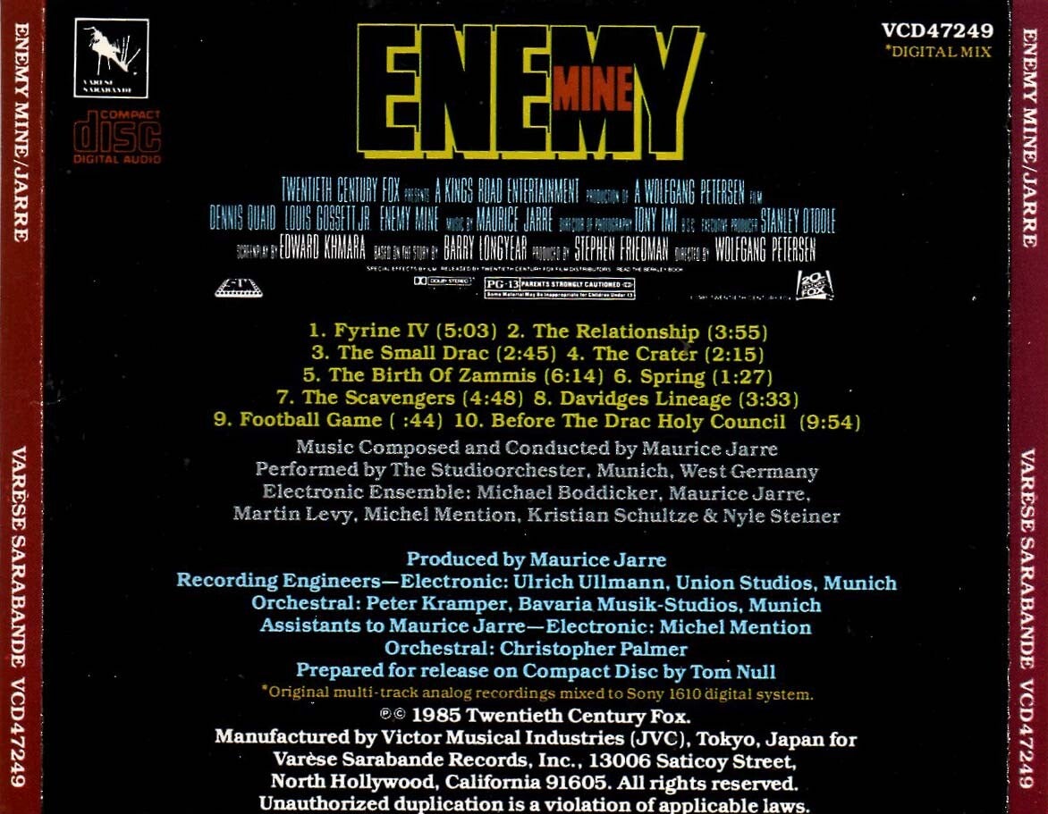 Artikel:Enemy Mine soundtrack CDMaatschappij:Varese SarabandeJaar:1985EAN:/Info:zie scan voor tracklistMaurice JarreStaat:****