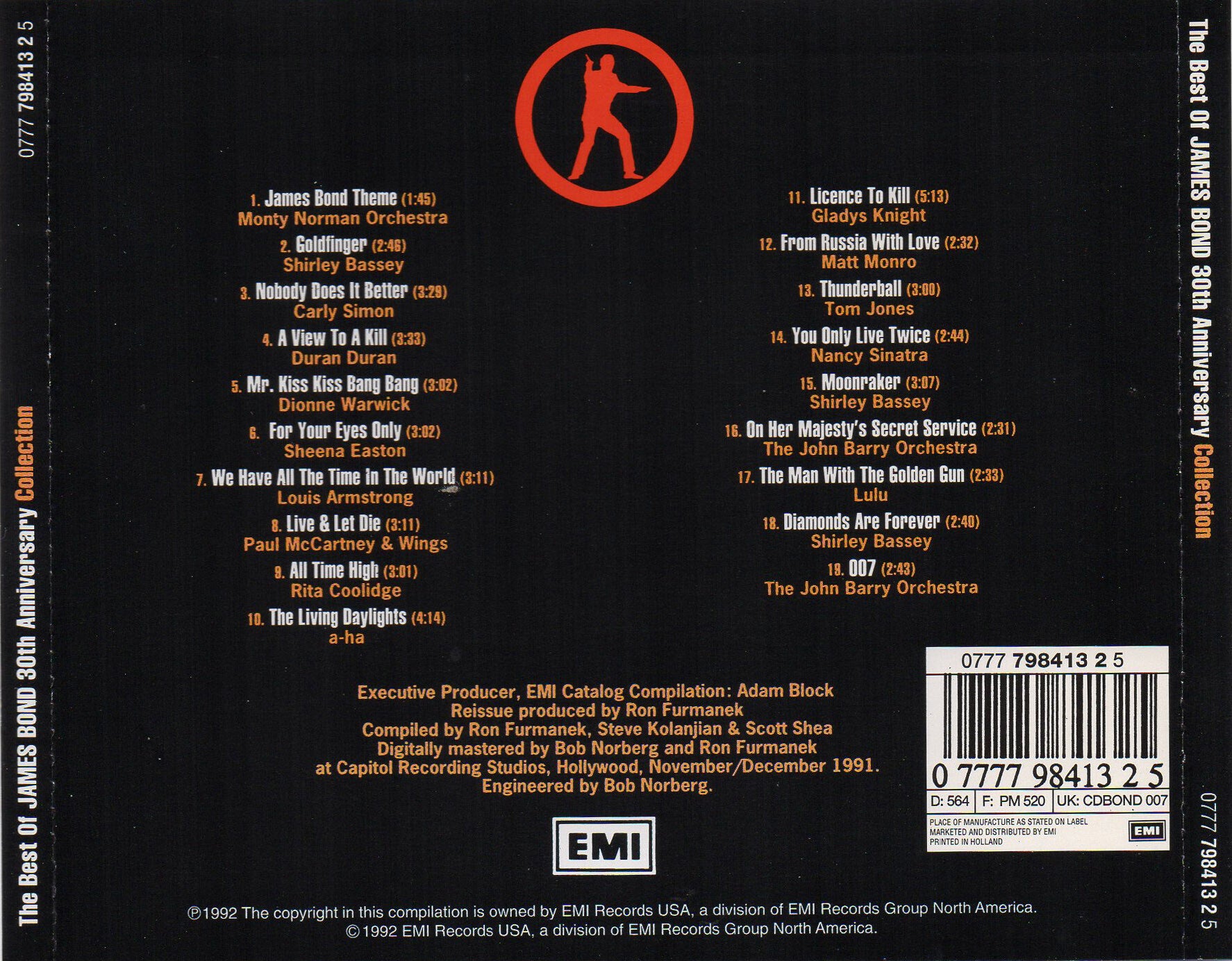 Artikel: Best of James Bond 30th Anniversary Collection soundtrack CDMaatschappij:EMIJaar:1992EAN:07779841325Info:zie scan voor tracklistStaat:****