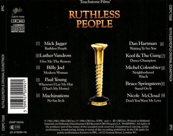 Artikel:Ruthless People soundtrack CDMaatschappij:CBSJaar:1986EAN:5099707029921Info:zie scan voor tracklistStaat:****