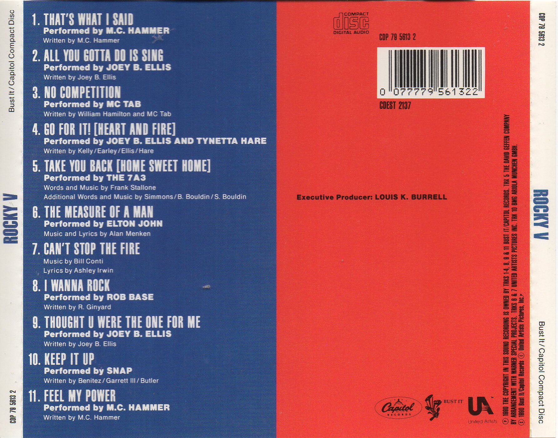 Artikel: Rocky V soundtrack CDMaatschappij:CapitolJaar:1990EAN:0077779561322Info:Zie scan voor tracklistVarious artistsStaat:***1/2 'case dents'