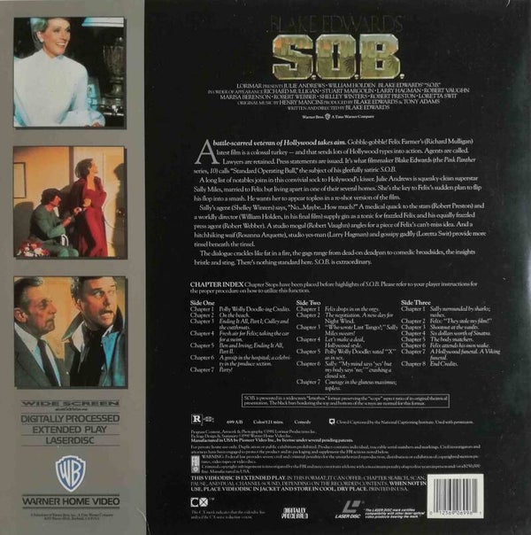 Artikel: S.O.B. laserdisc Maatschappij: Warner Home VideoJaar: 1981EAN:012569069961Info:121 minuten, 2 discsStaat:****
