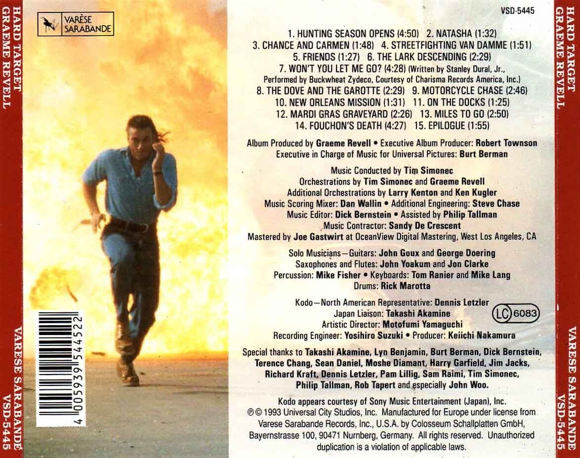 Artikel:Hard Target soundtrack CD Maatschappij:Varese SarabandeJaar:1993EAN:4005939544522Info:zie scan voor tracklistComponist:Graeme RevellStaat:****