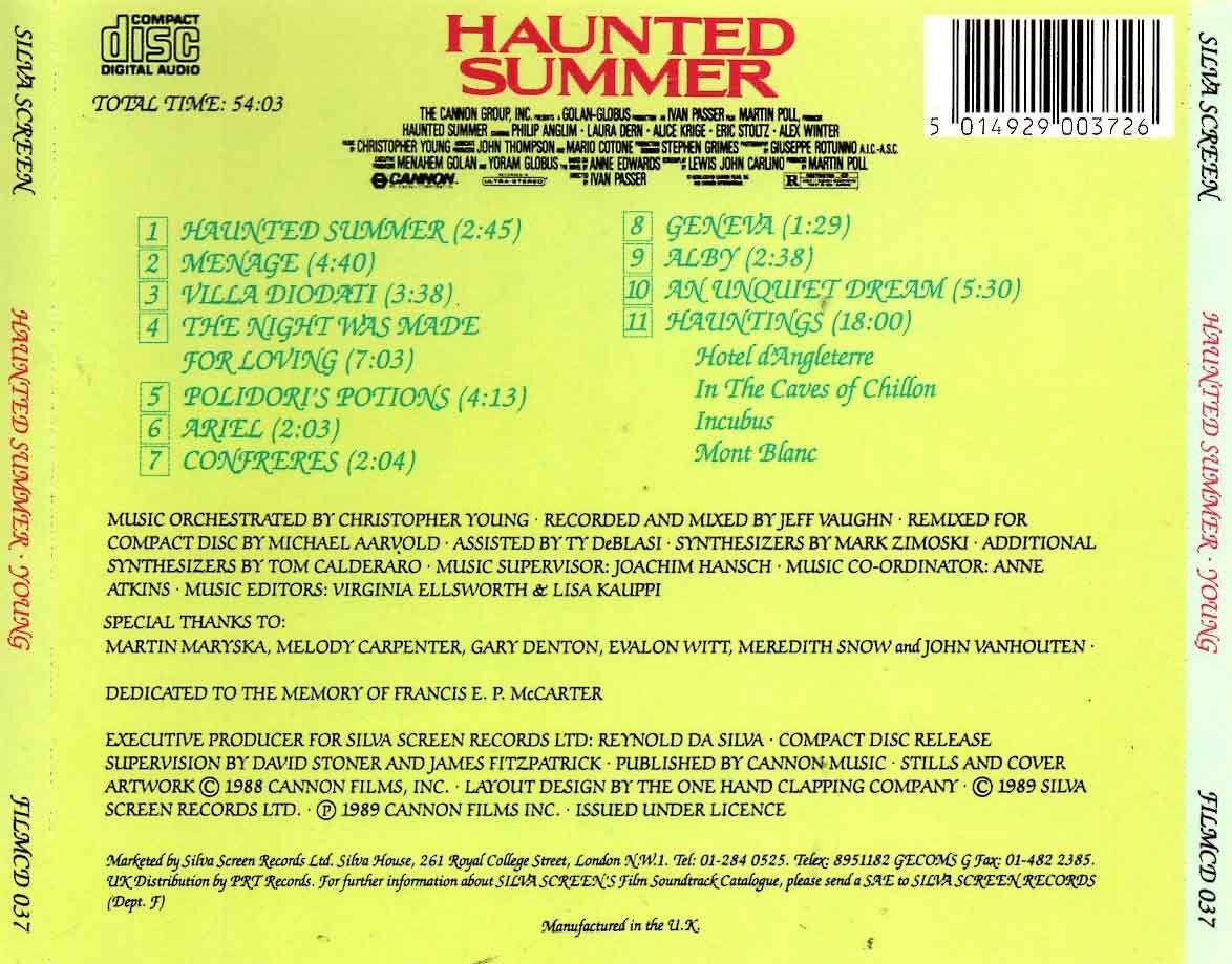 Artikel:Haunted Summer soundtrack CD Maatschappij:Silva ScreenJaar:1989EAN:5014929003726Info:zie scan voor tracklistComponist:Chrisopher YoungStaat:****zijkant licht verkleurd