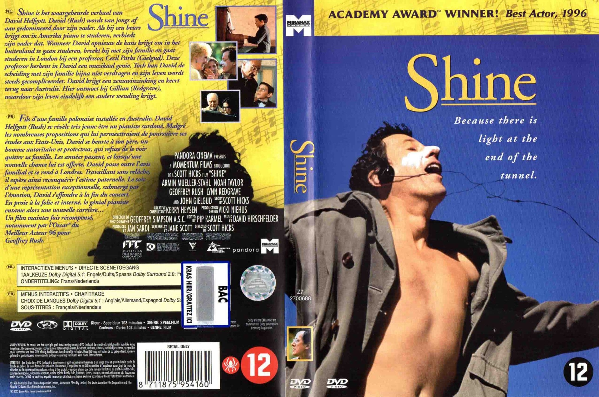 Artikel:Shine DVDMaatschappij:Disney/MiramaxJaar:1996EAN:8711875954160Info:NL ondertiteld 103 minutenStaat:****