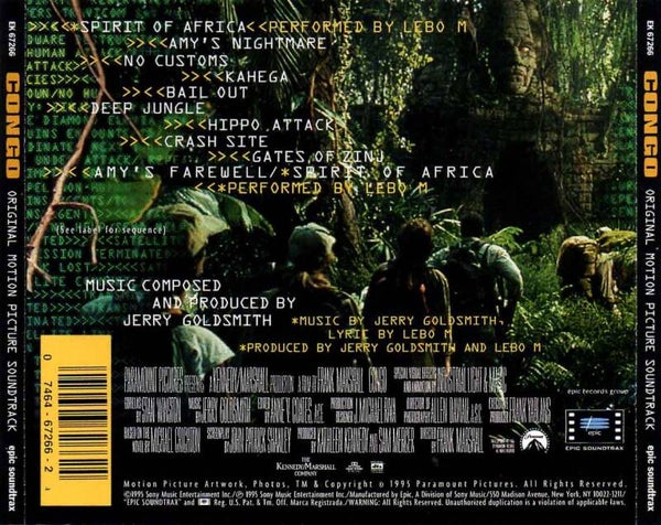 Artikel:Congo soundtrack CD Maatschappij:EpicJaar:1995EAN:07464672662Componist:Jerry GoldsmithInfo:zie scan voor tracklistStaat:****