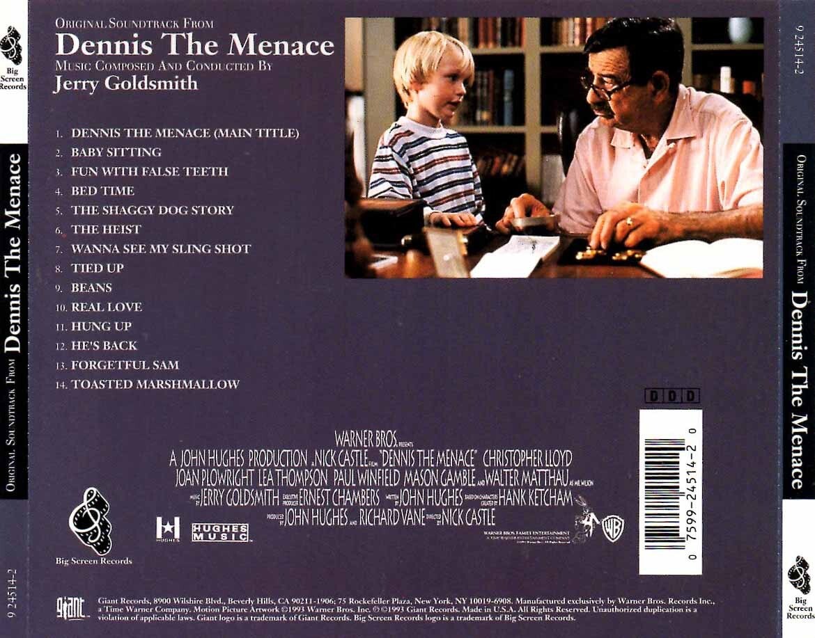 Artikel:Dennis the Menace soundtrack CD Maatschappij:Big Screen RecordsJaar:1993EAN:075992451420Componist:Jerry GoldsmithInfo:zie scan voor tracklistStaat:****