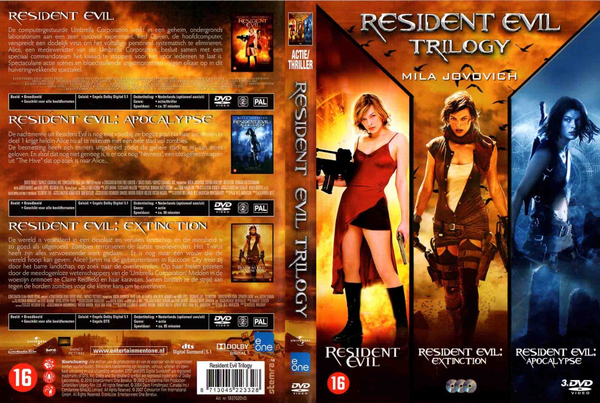 Artikel:Resident Evil trilogy 3DVD Maatschappij:RCVJaar:2010EAN:8713045223328Info:met slipcoverNL ondertiteld 97/90/95 minutenStaat:****