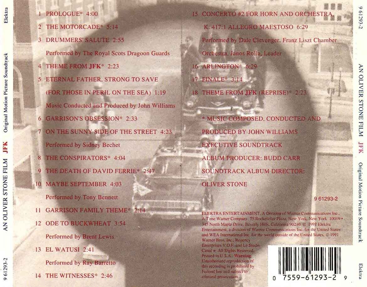 Artikel:JFK soundtrack CD Maatschappij:ElektraJaar:1992EAN:075596129329Componist:John WilliamsInfo:zie scan voor tracklistStaat:****