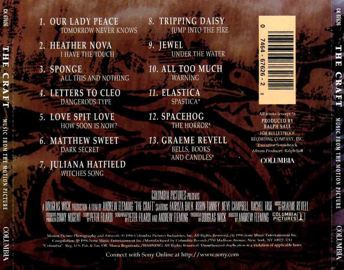 Artikel:Craft, the soundtrack CD Maatschappij:ColumbiaJaar:1996EAN:7464676262Componist:Various ArtistsInfo:zie scan voor tracklistStaat:***1/2 case dentszijkant verkleurd (zie scan)