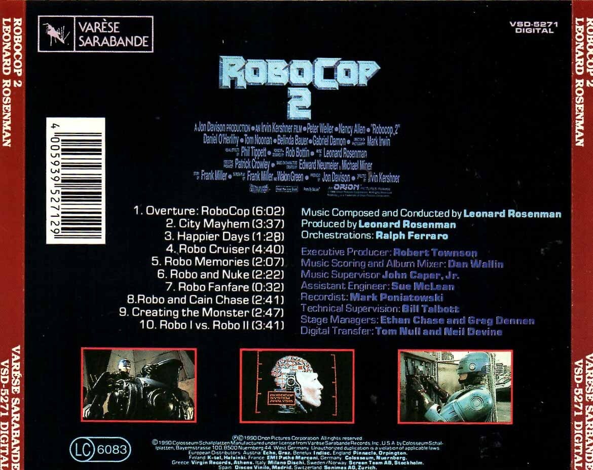 Artikel:Robocop 2 soundtrack CD Maatschappij:Varese SarabandeJaar:1990EAN:4005939527129Componist:Leonard RosenmanInfo:zie scan voor tracklistStaat:****bedrukte cdkant lichte beschadiging