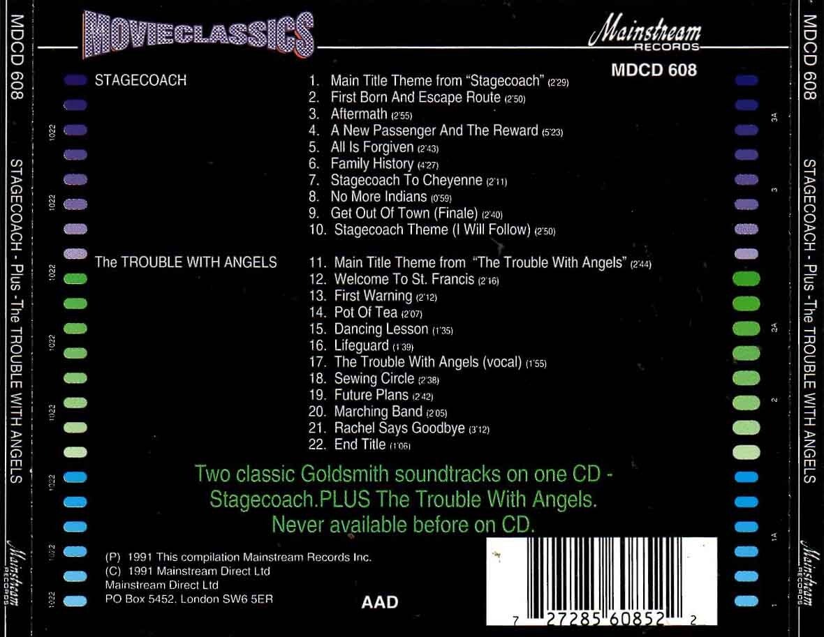 Artikel:Stagecoach soundtrack CD Maatschappij:Mainstream RecordsJaar:1991EAN:727285608522Componist:Jerry GoldsmithInfo:zie scan voor tracklistBevat ook muziek van The trouble with angelsStaat:****
