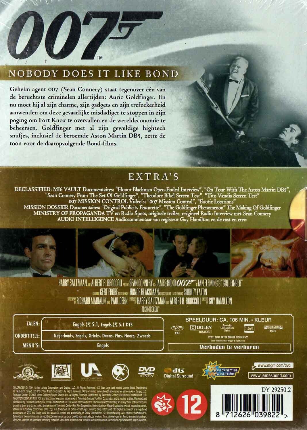 Artikel:Goldfinger 2DVD Maatschappij:MGMJaar:1964EAN:8712626039822Info:NL ondertiteld 106 minutenStaat:****1/2geseald exemplaar